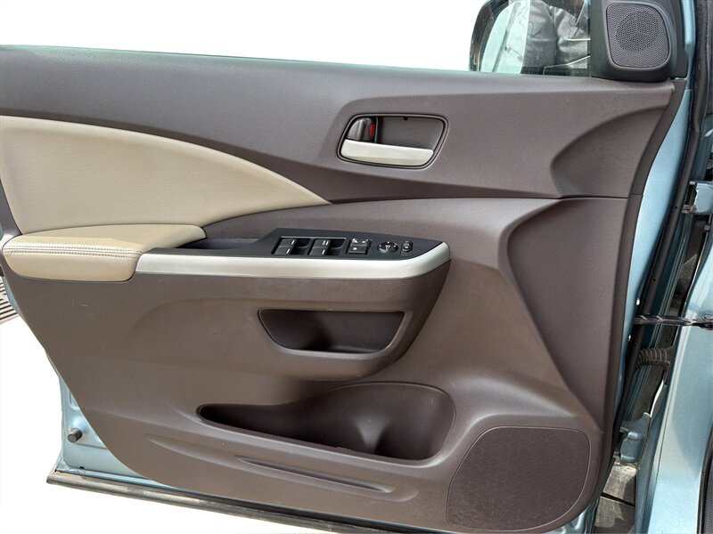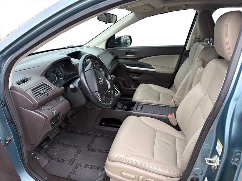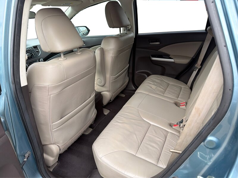 Introducing the 2014 Honda CR-V EX-L, a well-maintained compact SUV featuring a striking Teal exterior and a comfortable Gray interior. Powered by a 2.4L I4 engine delivering 185 horsepower and 163 ft-lbs of torque, this vehicle offers a balanced blend of performance and efficiency, achieving an impressive 23 MPG in the city and 31 MPG on the highway.