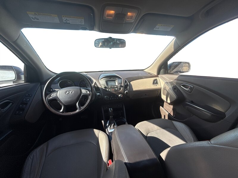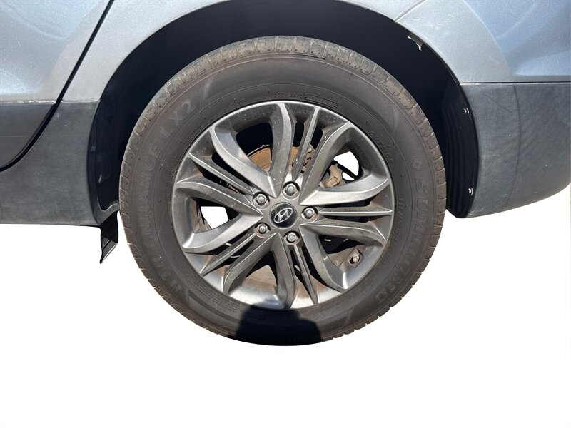 Discover the 2015 Hyundai Tucson SE, a compact SUV that combines style and efficiency. Powered by a robust 2.4L I4 engine, it delivers 182 horsepower and 177 lb-ft of torque, ensuring a responsive driving experience. The exterior is finished in a sleek gray, complemented by a matching gray interior that offers a modern and comfortable atmosphere.