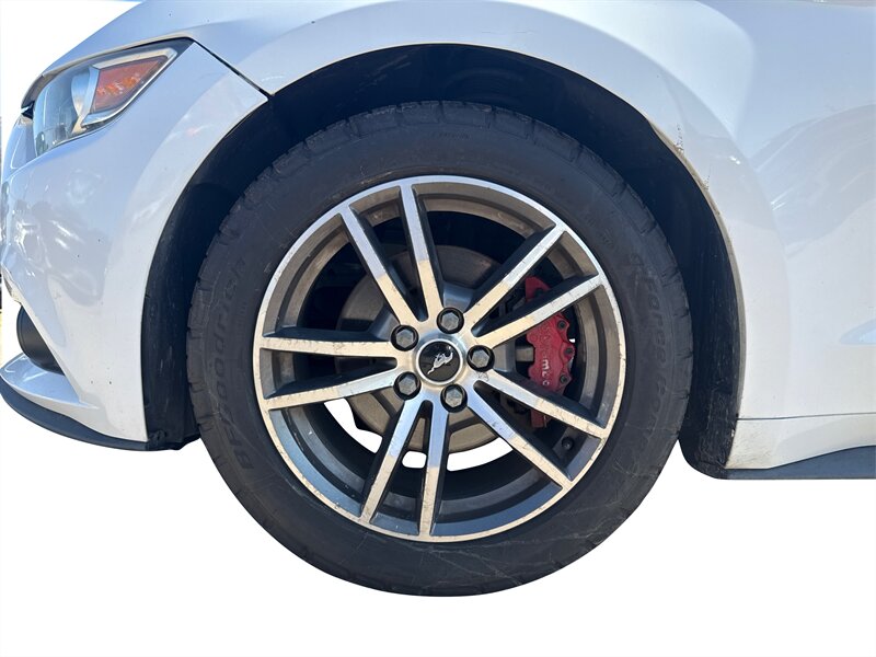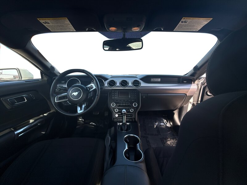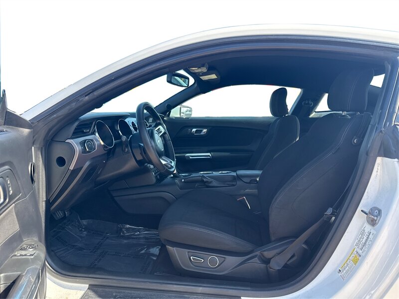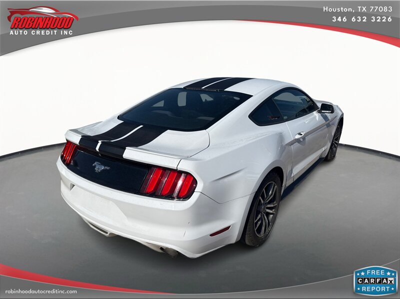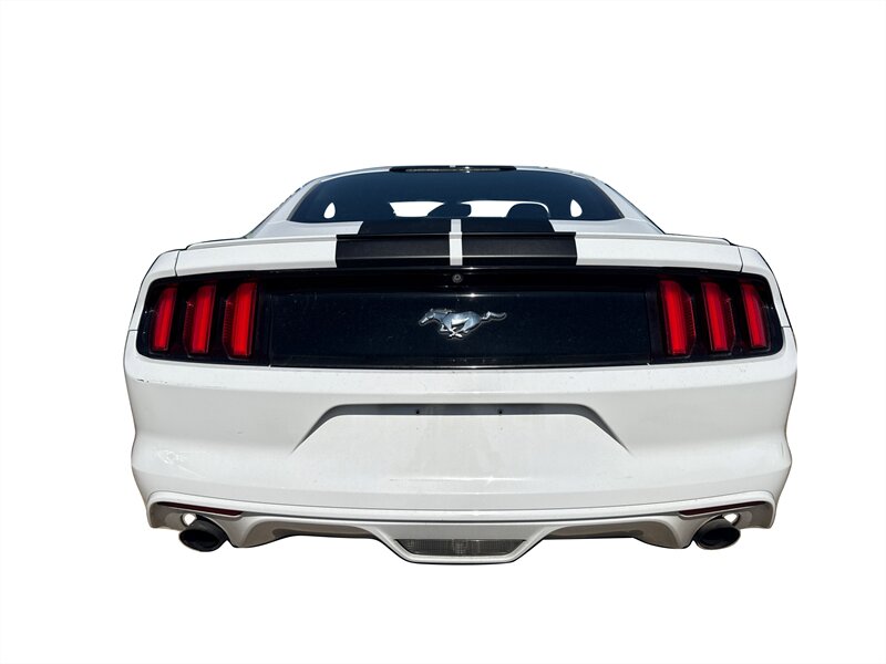 2016 Ford Mustang EcoBoost in White with Black interior. Powered by a turbocharged EcoBoost 2.3L I4 producing 310 hp and 320 lb-ft of torque, with EPA ratings of 22 MPG city and 31 MPG highway. Factory-standard equipment typically includes independent rear suspension, four-wheel anti-lock brakes, traction and stability control, and a full complement of airbags; comfort and convenience features include power windows and locks, remote keyless entry, air conditioning, tilt/telescoping steering wheel, cruise control, Ford SYNC infotainment with Bluetooth and USB inputs, and a factory audio system with alloy wheels. This vehicle is in excellent overall condition.