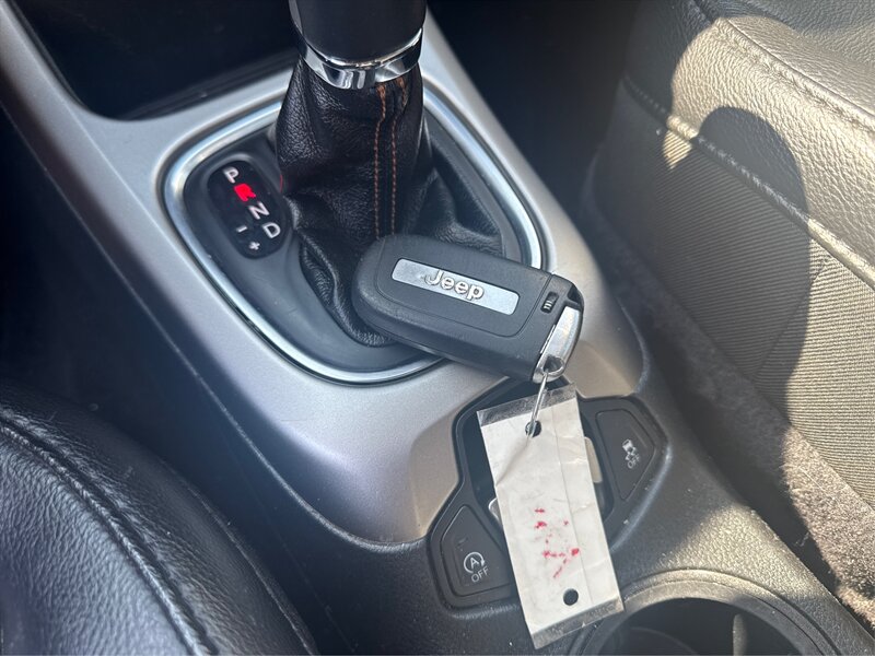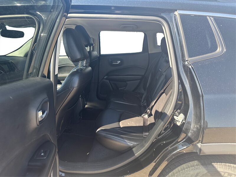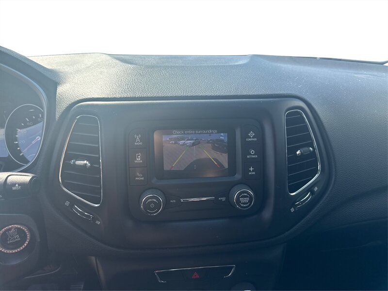 2018 Jeep Compass Latitude powered by the Tigershark 2.4L I4 (180 hp, 175 lb-ft), EPA-rated at 22 MPG city and 31 MPG highway. Factory-standard equipment includes cloth seating with a 60/40 split-folding rear seat, roof rails, remote keyless entry, power windows and locks, cruise control, and steering-wheel audio/phone controls. Tech and safety features from the factory include the Uconnect touchscreen infotainment system with Bluetooth and USB/Aux connectivity, a rearview camera, ABS, electronic stability and traction control, multiple airbags, and tire pressure monitoring. Exterior: Black; interior: Black; vehicle is in excellent overall condition.