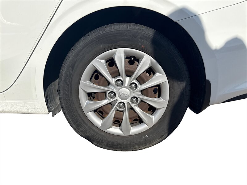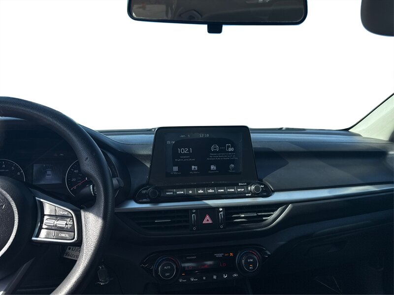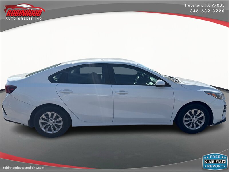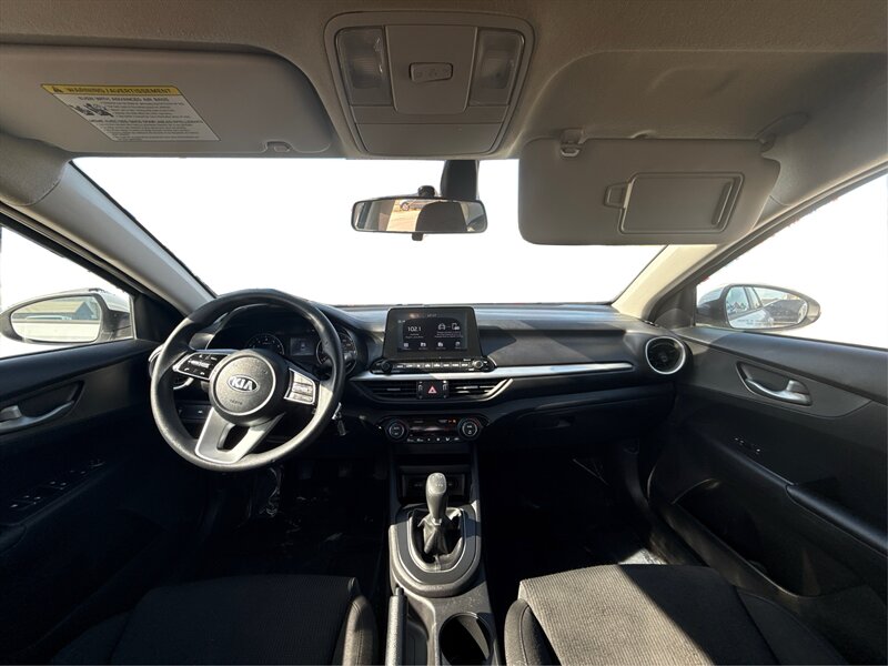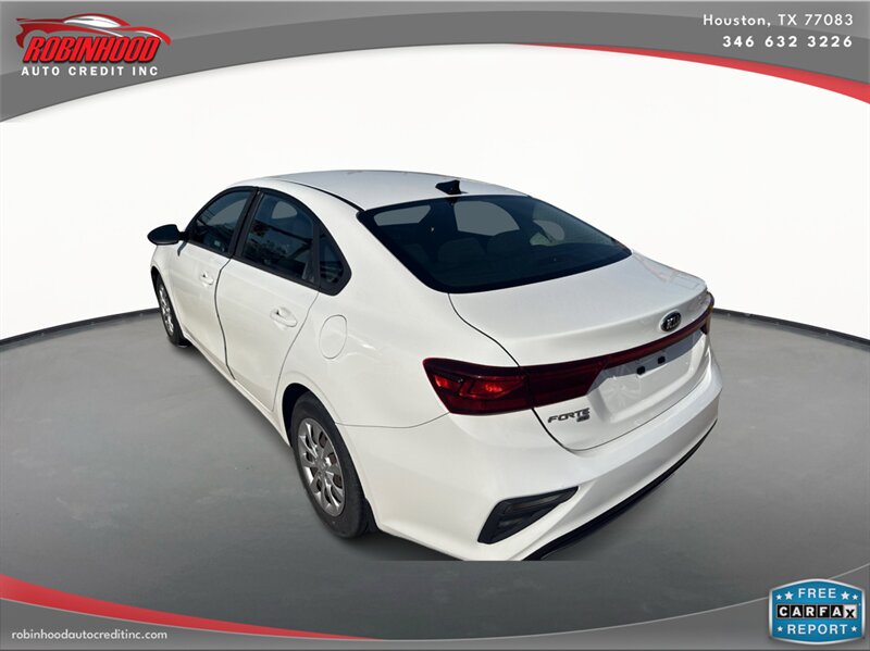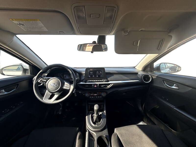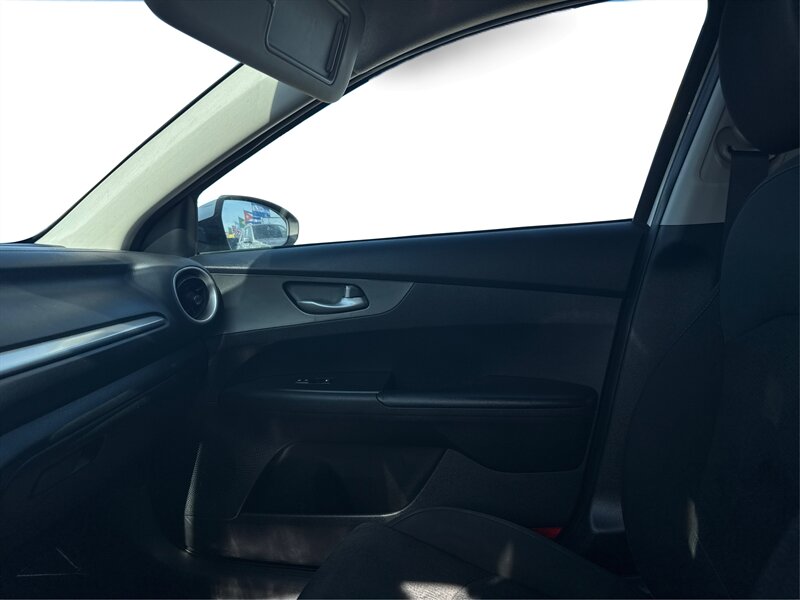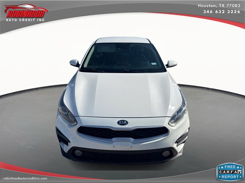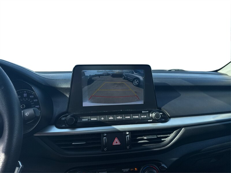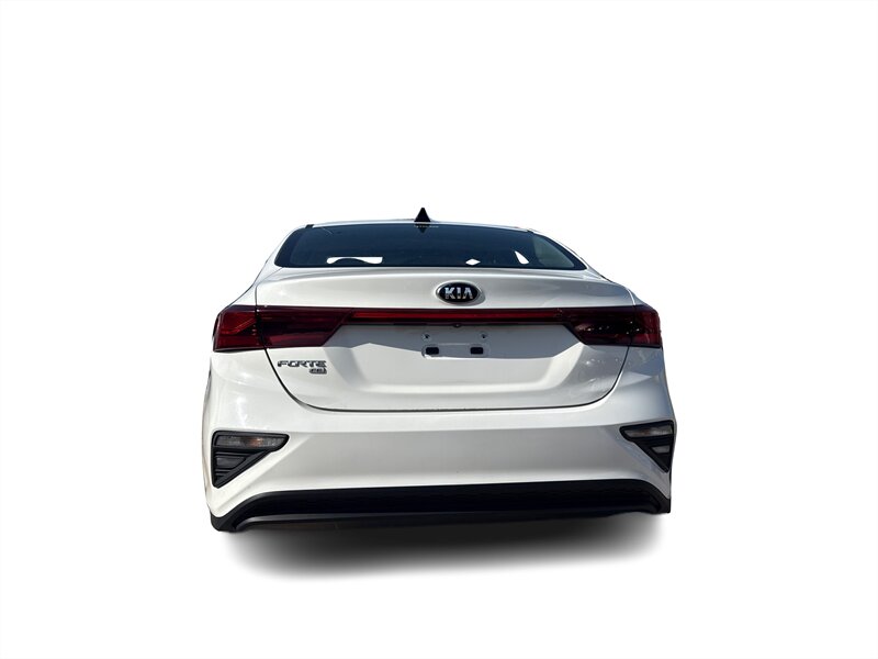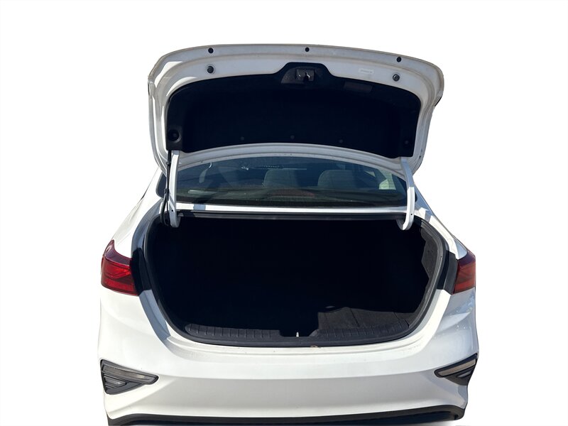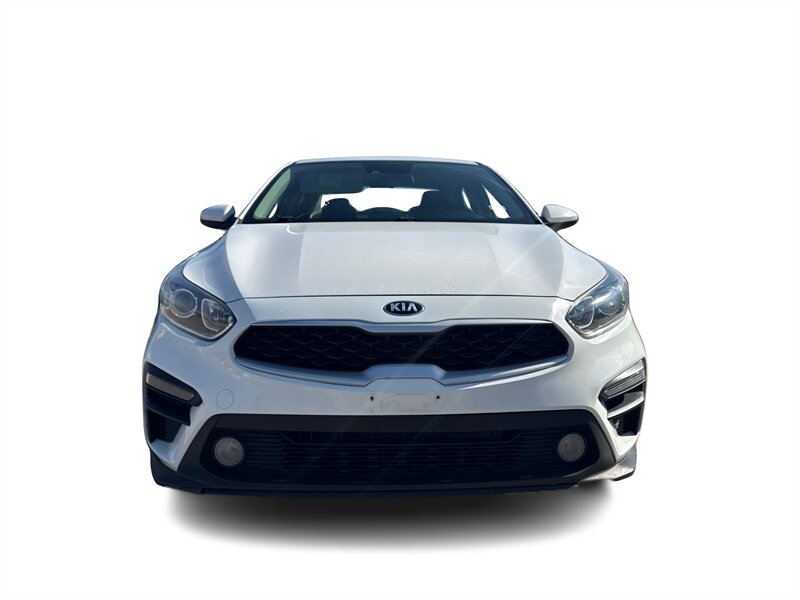 2019 Kia Forte FE in White with a Black interior. Powered by a Nu 2.0L I4 (147 hp, 132 lb-ft), EPA-rated at 27 MPG city / 37 MPG highway, and in excellent overall condition. Factory-standard equipment includes air conditioning, cloth seating, power windows and door locks, remote keyless entry, cruise control and tilt steering, Bluetooth hands-free and audio streaming with USB connectivity and AM/FM radio, a rear-view camera, split-folding rear seat, anti-lock brakes, electronic stability and traction control, and front and side airbags.