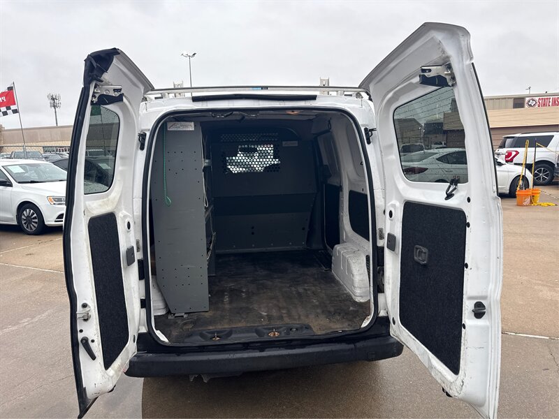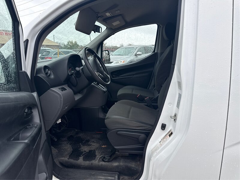 2020 Nissan NV200 S powered by a 2.0L I4 (131 hp / 139 lb-ft), in White exterior with Black cloth interior — excellent overall condition. EPA-rated 24 MPG city / 26 MPG highway. Factory-standard features include air conditioning, AM/FM audio with Bluetooth hands-free calling and USB/AUX inputs, steering-wheel audio controls, rearview camera, power windows and door locks with remote keyless entry, 15-inch steel wheels with all-season tires, a sliding side cargo door and wide-opening rear cargo doors, cargo-area lighting and tie-down points, and standard safety equipment (ABS, stability control, front airbags and side-impact protection, tire pressure monitoring).